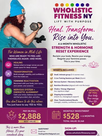 6-Month Wholistic Strength & Hormone Reset Experience for women in mid-life who are ready to feel strong, energized, and deeply connected again.